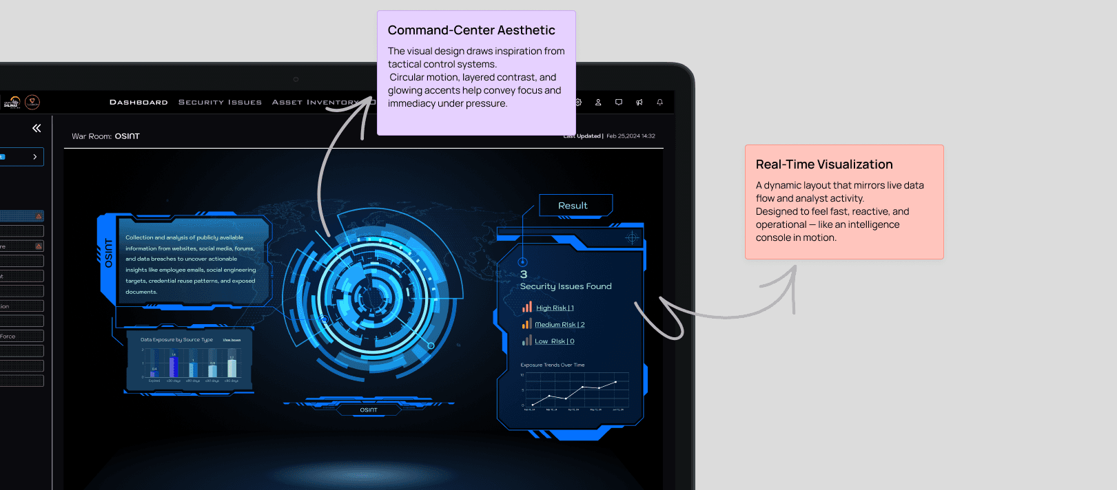 Role: Product Designer · Scope: War Room Dashboard · Scanner Insights · Response Workflows · Tools: Figma · Prototyping